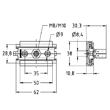 Schiebeschlitten 1 kN, Anschluss M8/M10, verzinkt